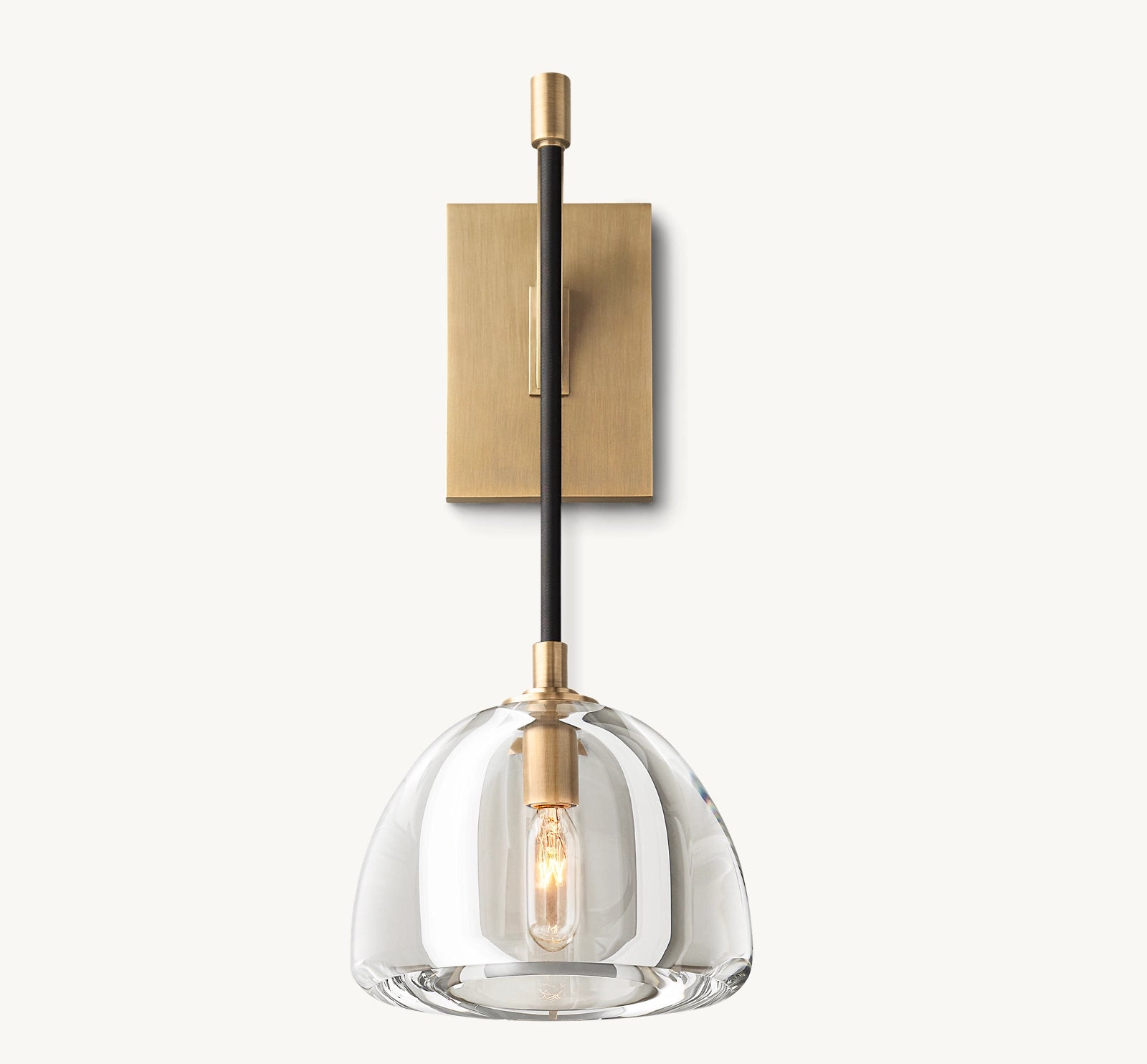 L’applique Hémisphère met en scène le contraste entre densité et précision. Un dôme en cristal, taillé avec rigueur et poli à la main, est suspendu devant un cadre mural minimaliste. L’ensemble projette une lumière structurée et silencieuse, idéale pour souligner un mur avec caractère.