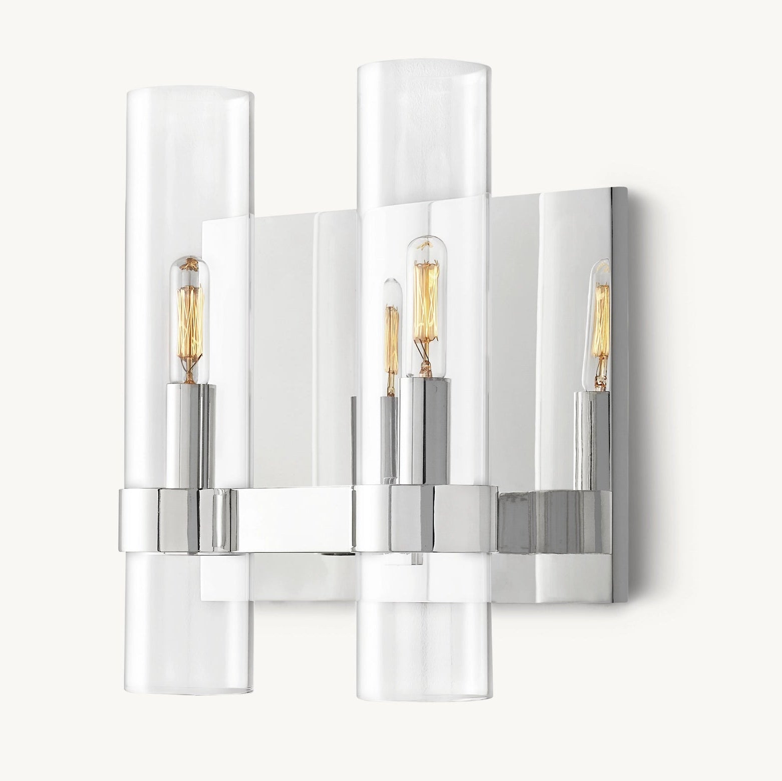 Les silhouettes Art déco renaissent, allégées par une modernité discrète. En acier massif, des lignes métalliques sobres soutiennent délicatement de fins cylindres de verre. À l’intérieur, les ampoules diffusent une lueur chaleureuse, semblable à celle d’une bougie.