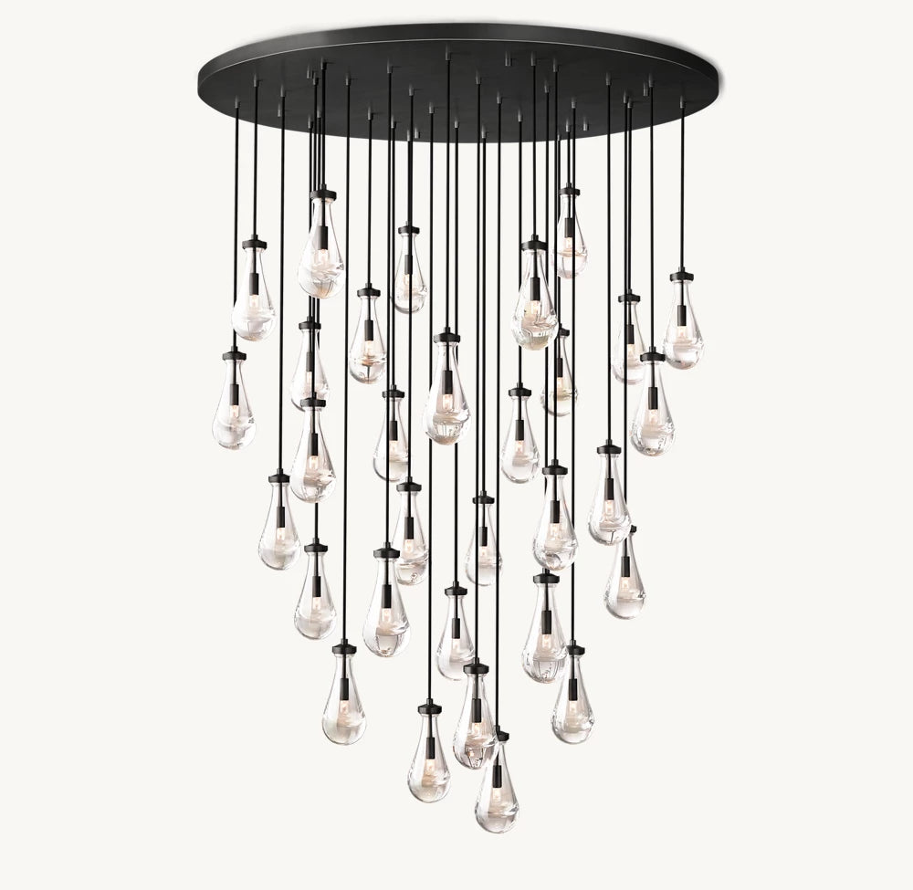 • Chaque goutte en verre : 13cm de diamètre, 28cm de hauteur ; 2.3kg