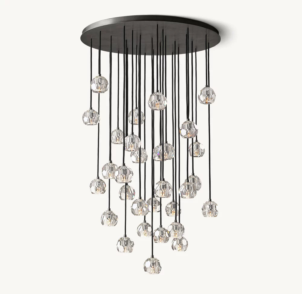 Conçu en laiton massif et en verre cristal, ce luminaire sculptural témoigne d’une passion pour les matériaux luxueux et le savoir-faire d’exception. Inspirée par l’esprit minimaliste du design des années 1960, chaque sphère finement facettée est taillée et polie à la main pour refléter et réfracter la lumière avec éclat.