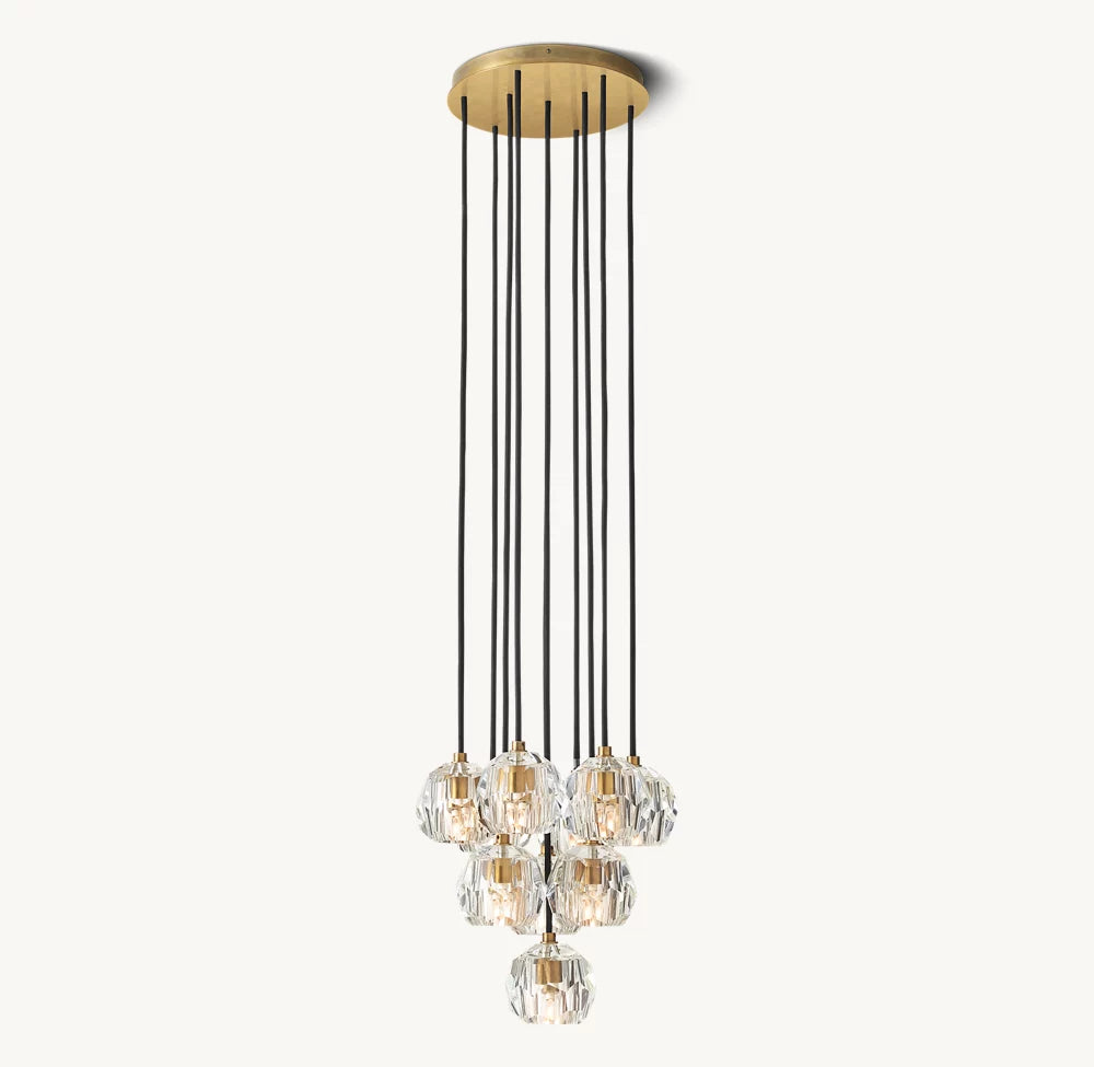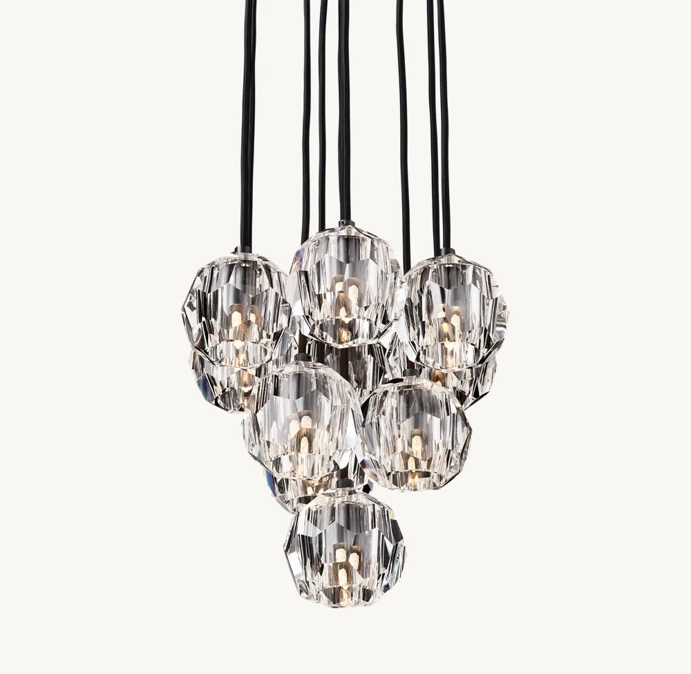 Conçu en laiton massif et en verre cristal, ce luminaire sculptural témoigne d’une passion pour les matériaux luxueux et le savoir-faire d’exception. Inspirée par l’esprit minimaliste du design des années 1960, chaque sphère finement facettée est taillée et polie à la main pour refléter et réfracter la lumière avec éclat.