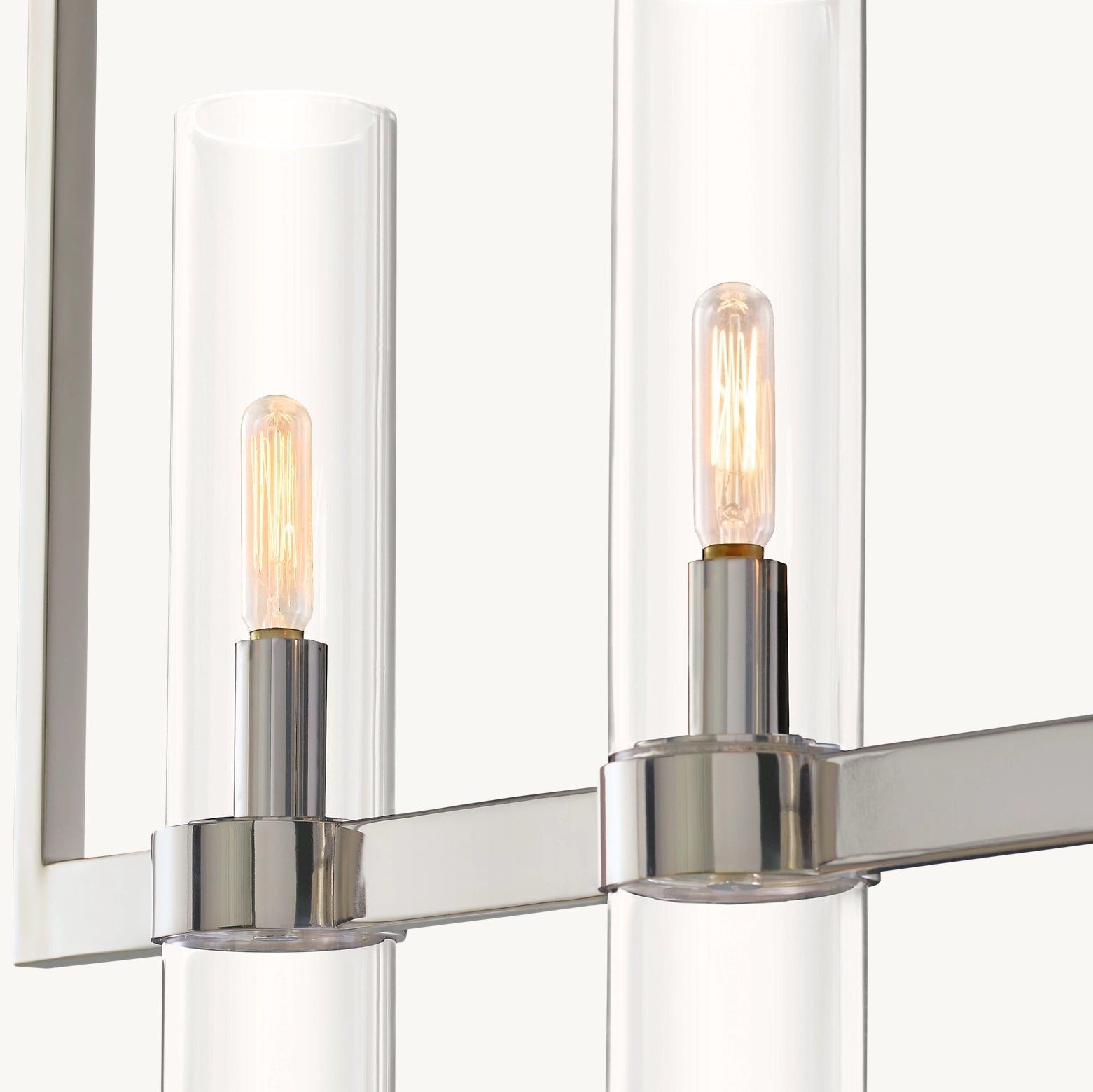 Les silhouettes Art déco renaissent, allégées par une modernité discrète. En acier massif, des lignes métalliques sobres soutiennent délicatement des fins cylindres de verre. À l'intérieur, les ampoules diffusent une lueur chaleureuse, semblable à celle d'une bougie.