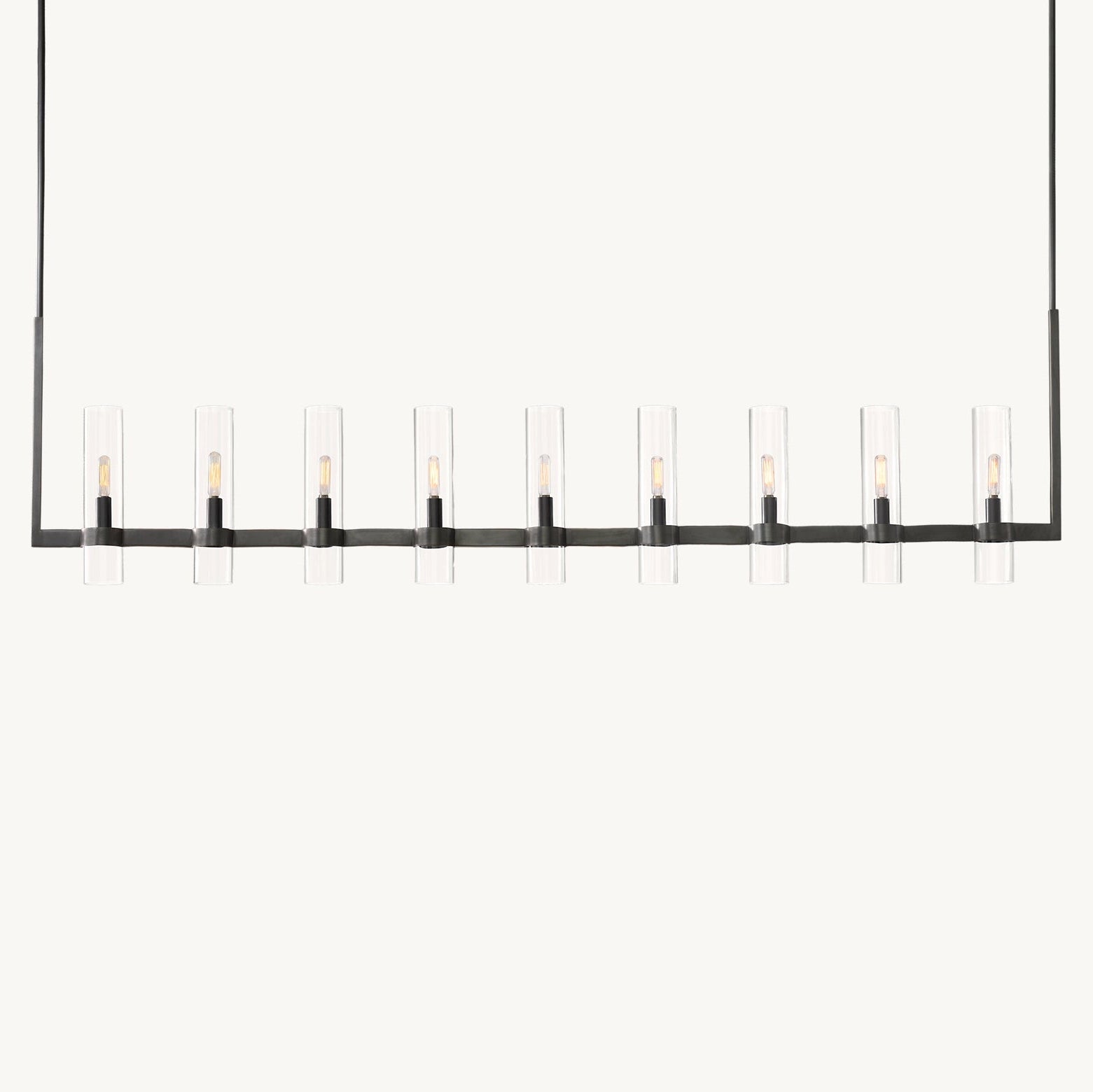 Corps du lustre : 175 cm L x 6 cm P x 46 cm H