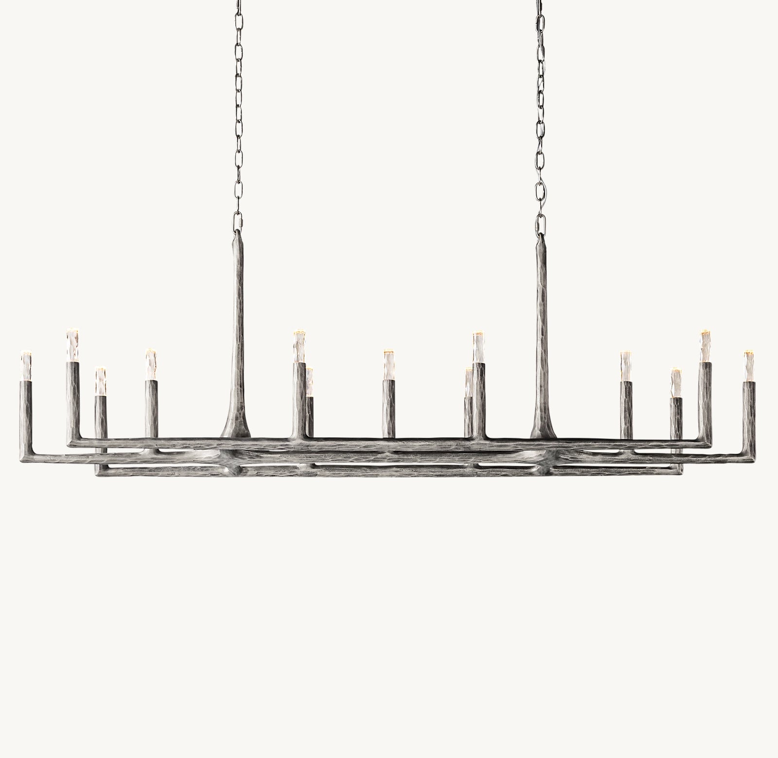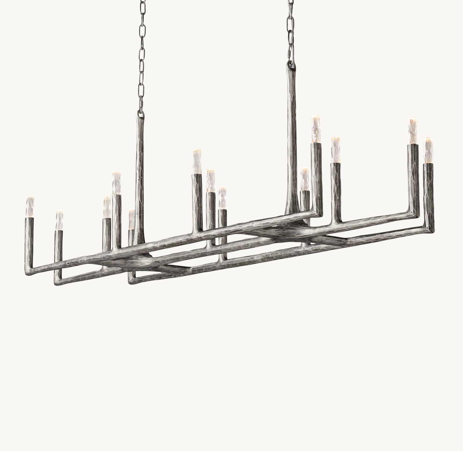 • Corps du lustre : 183 cm L x 48 cm P x 56 cm H