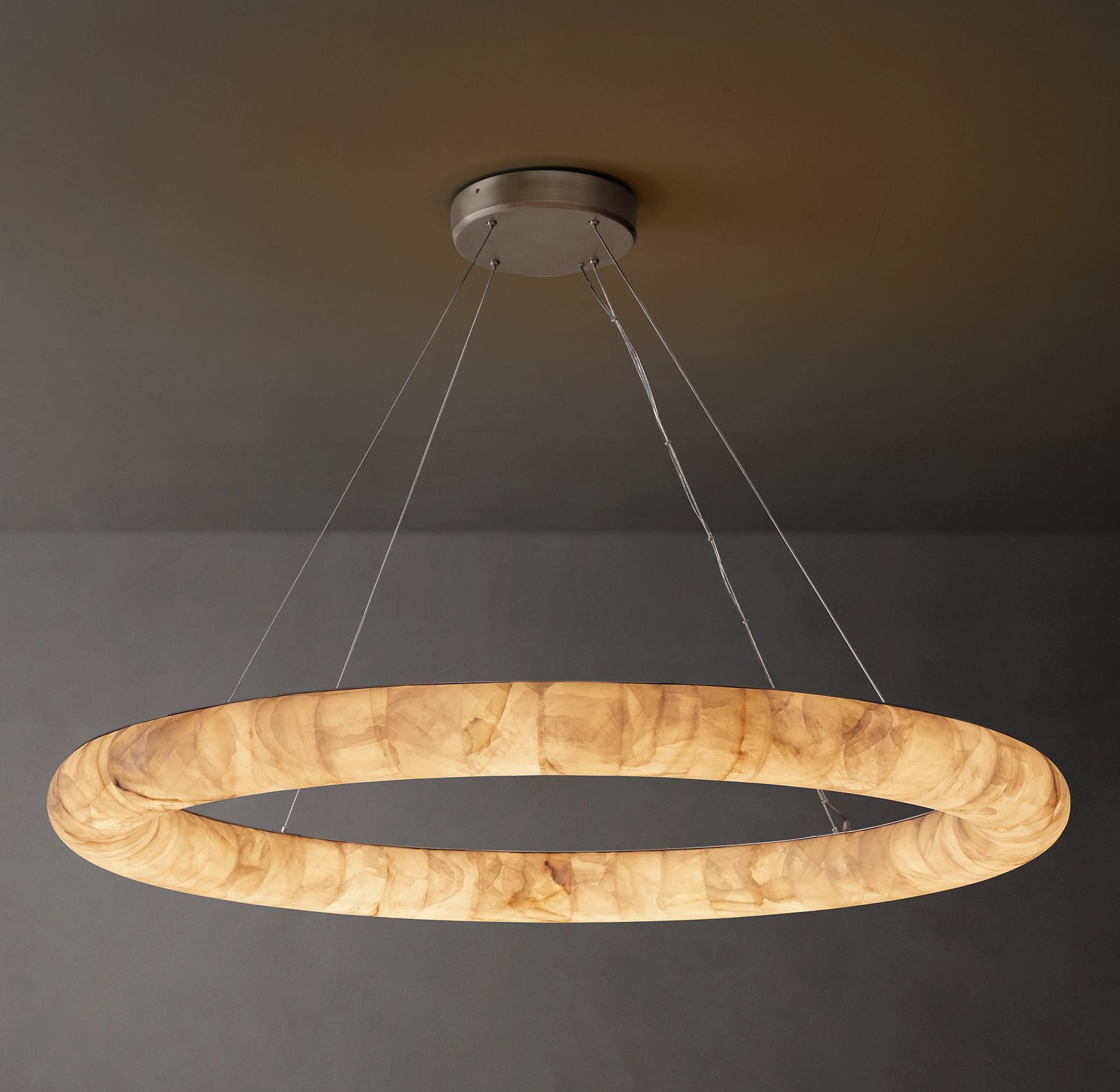 Sculpté dans de la calcite translucide, Opale capture l'essence du luxe organique. Chaque halo de pierre, lissé à la perfection, dévoile un éclat chaud et naturel. Suspendue avec discrétion, la structure semble flotter, tandis qu'un éclairage subtil révèle la richesse des veinures. Une création précieuse, où chaque pièce raconte sa propre histoire minérale.