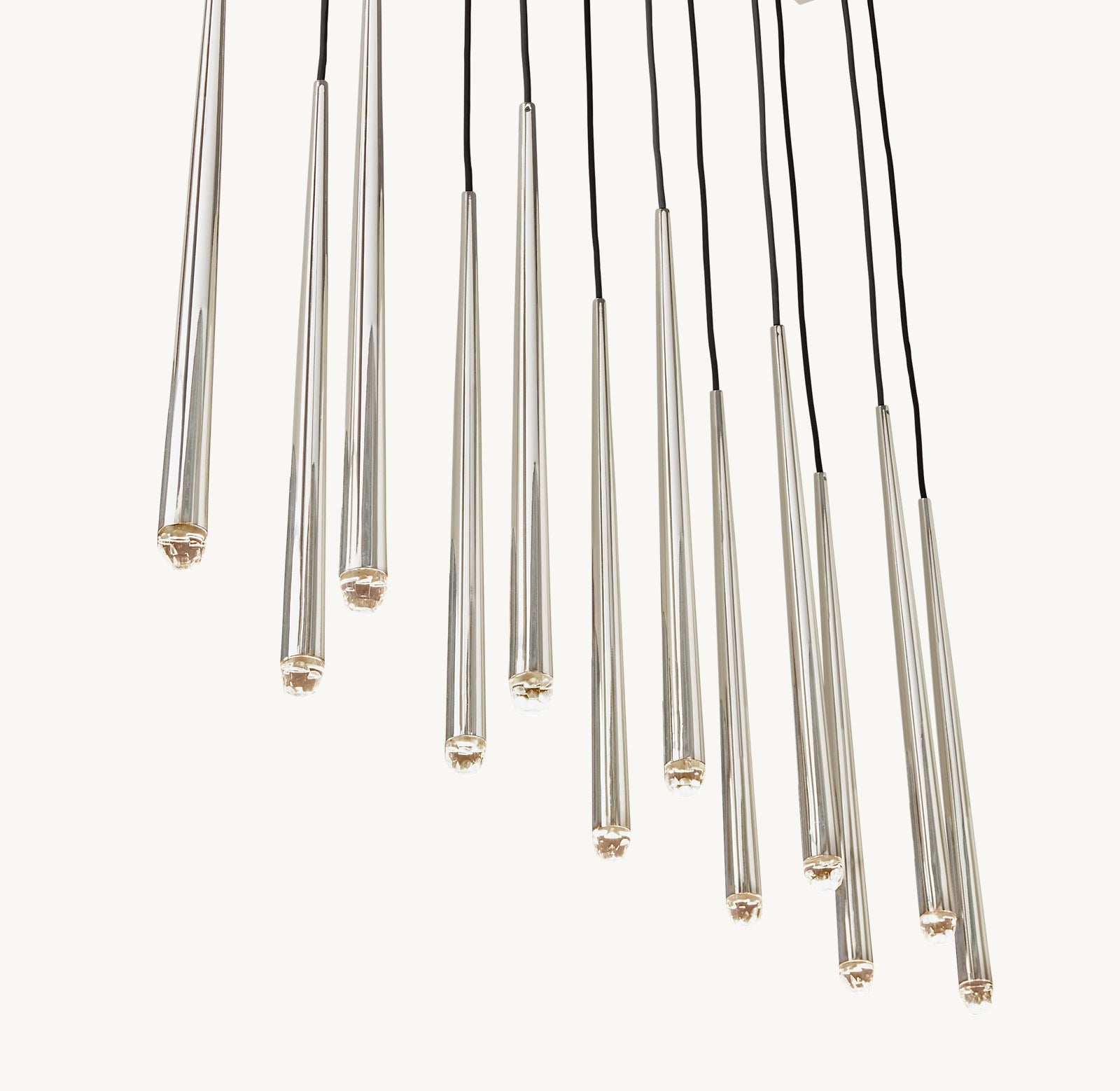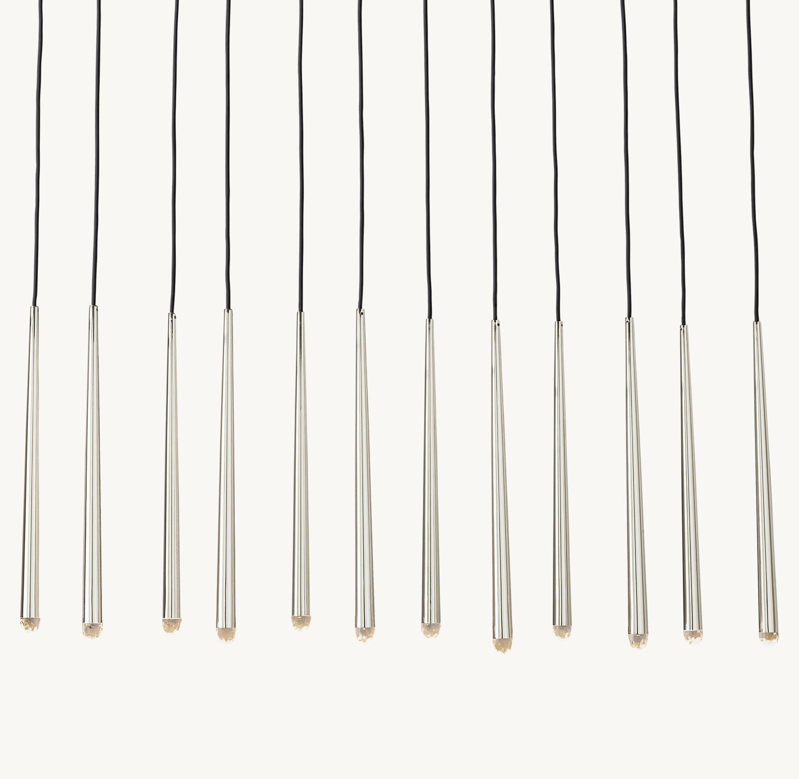 • 12 lumières suspendues à de fins cordons noirs