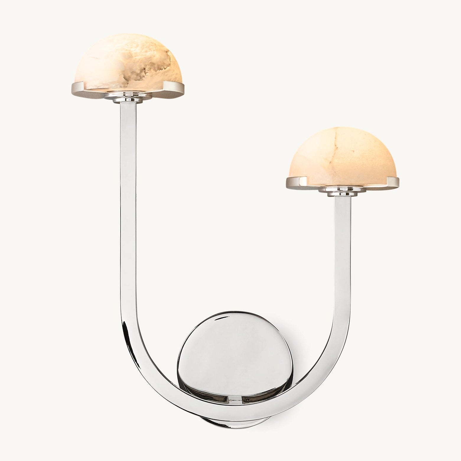 Hommage à l’élégance du design italien d’après-guerre, cette collection allie lignes pures et matériaux nobles. Le laiton massif, façonné avec finesse, soutient des abat-jour en albâtre taillé, dont les veines naturelles diffusent une lumière douce et organique. Une sobriété sophistiquée, toute en nuances.