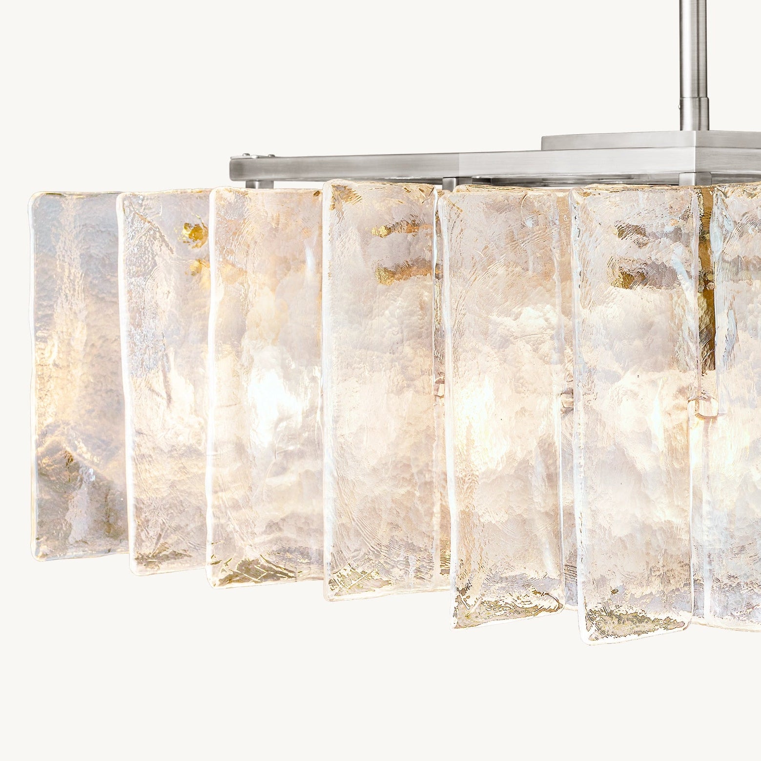 La collection Orsay, façonnée en verre coulé massif, réinterprète la rigueur du style international du milieu du siècle. À travers ses surfaces imbriquées et ses volumes ouverts, elle propose une lecture sculpturale du rythme et de la répétition. Les vitres, aux contours adoucis et aux lignes ondoyantes, diffusent une lumière intérieure qui confère à l'ensemble une légèreté visuelle saisissante.