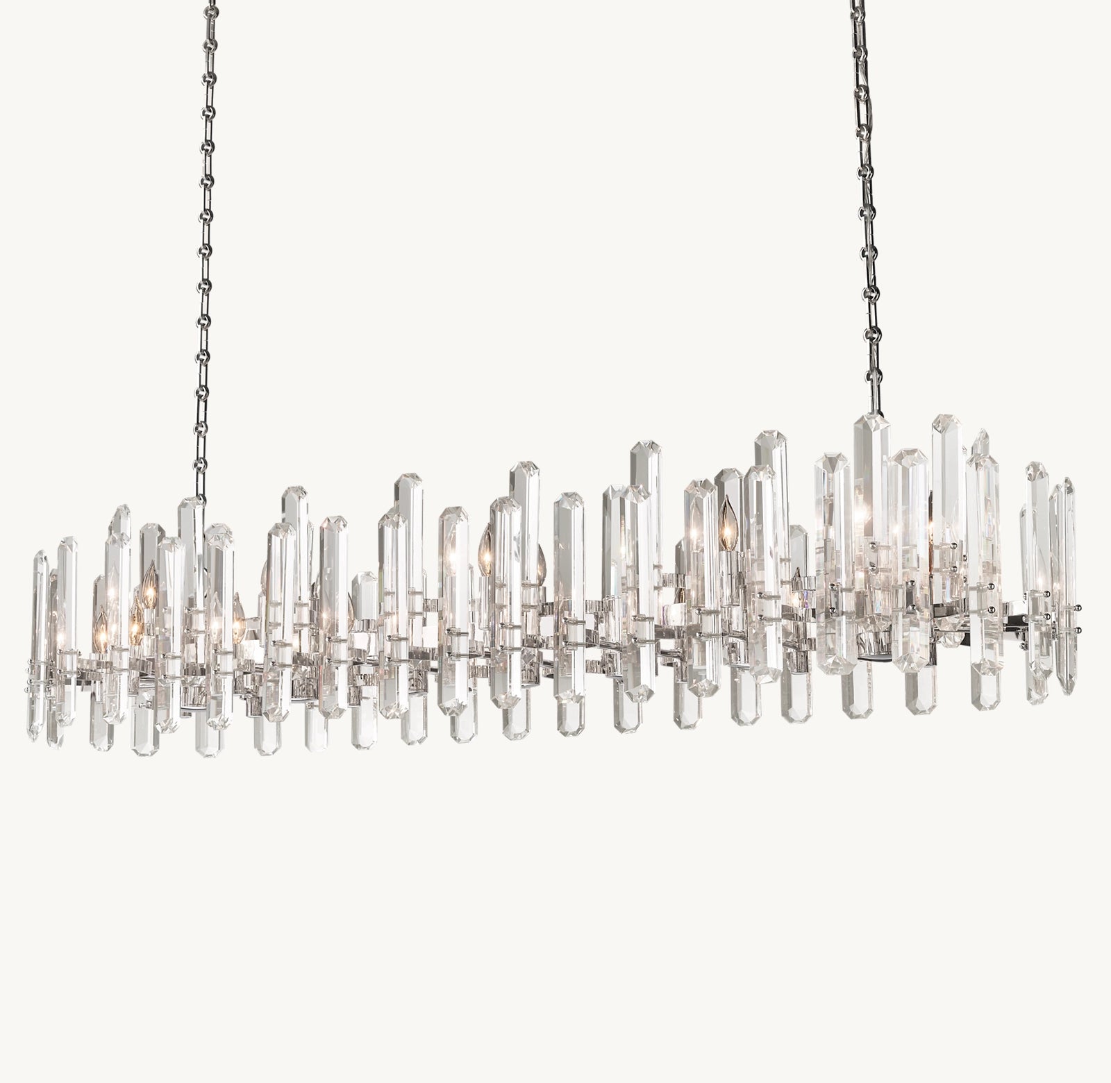 • Corps du lustre : 183 cm L x 57 cm P x 39 cm H