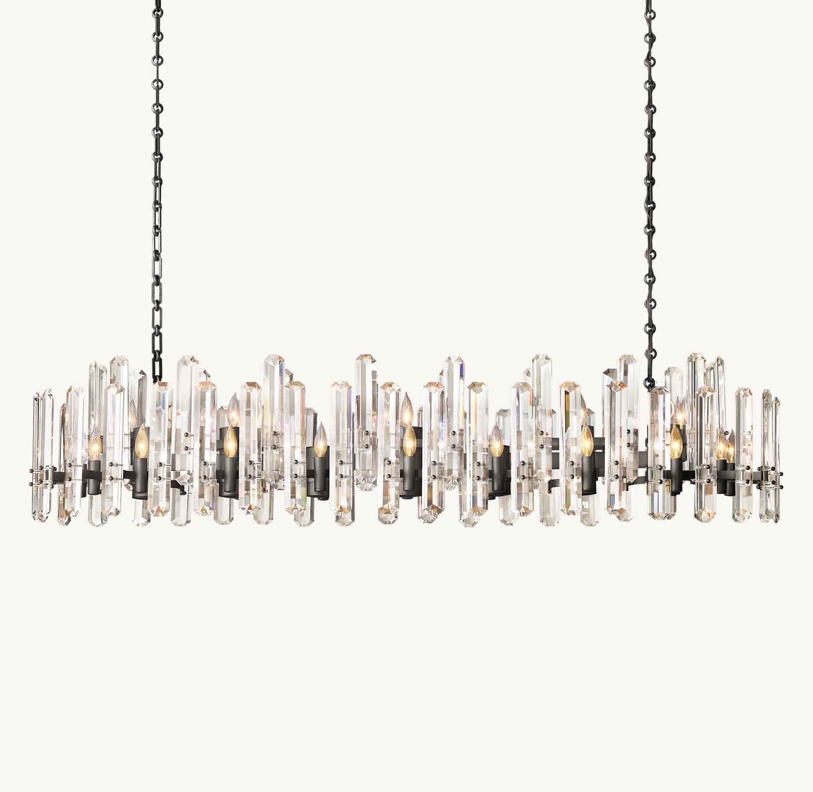 • Corps du lustre : 183 cm L x 57 cm P x 39 cm H