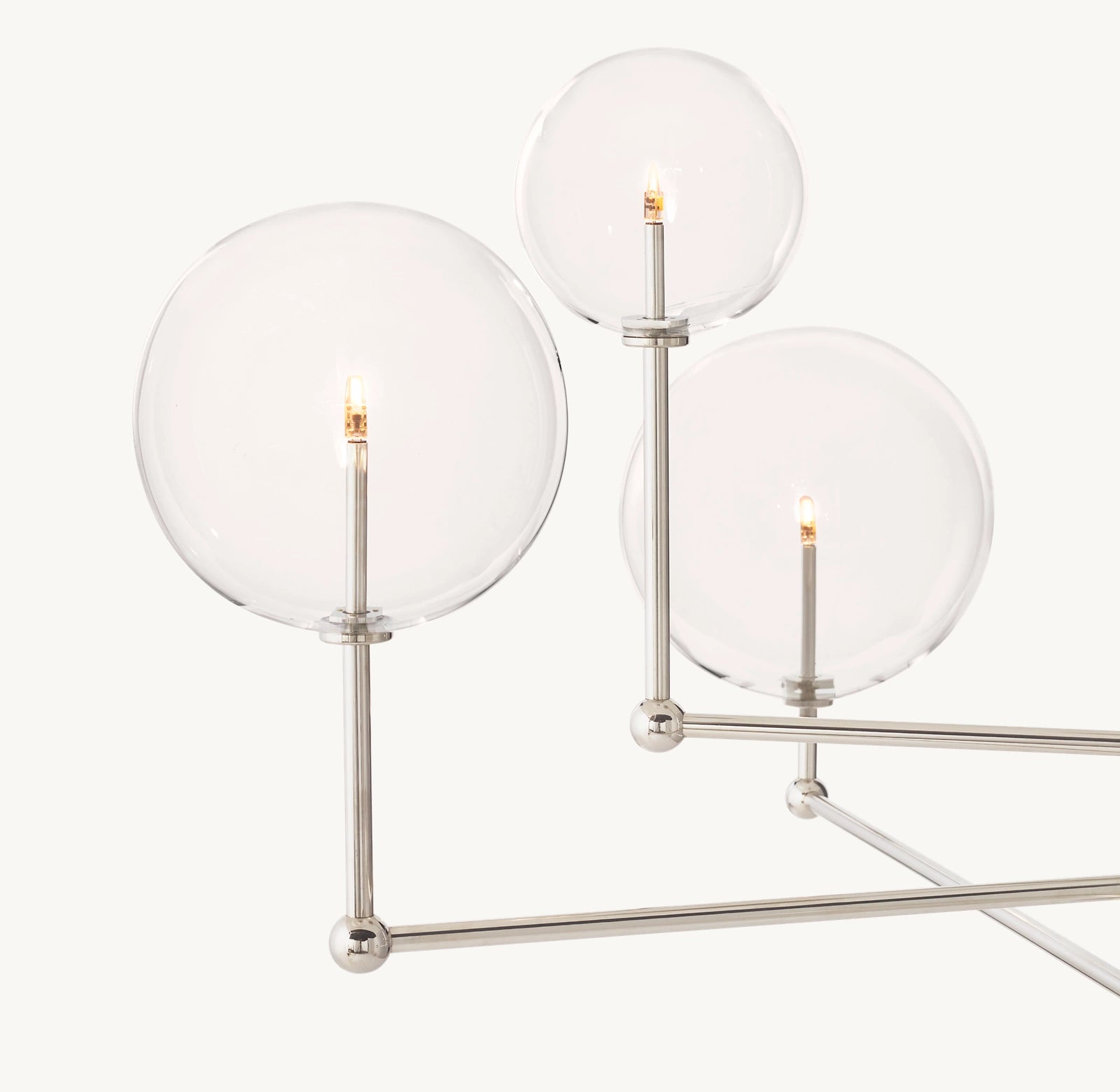 Équilibre subtil entre artisanat et design, Vauban associe des globes en verre soufflé à la main à une structure en laiton massif. Chaque pièce reflète le geste du maître verrier, exprimant à la fois la souplesse du mouvement et la rigueur d'un style architectural moderne.