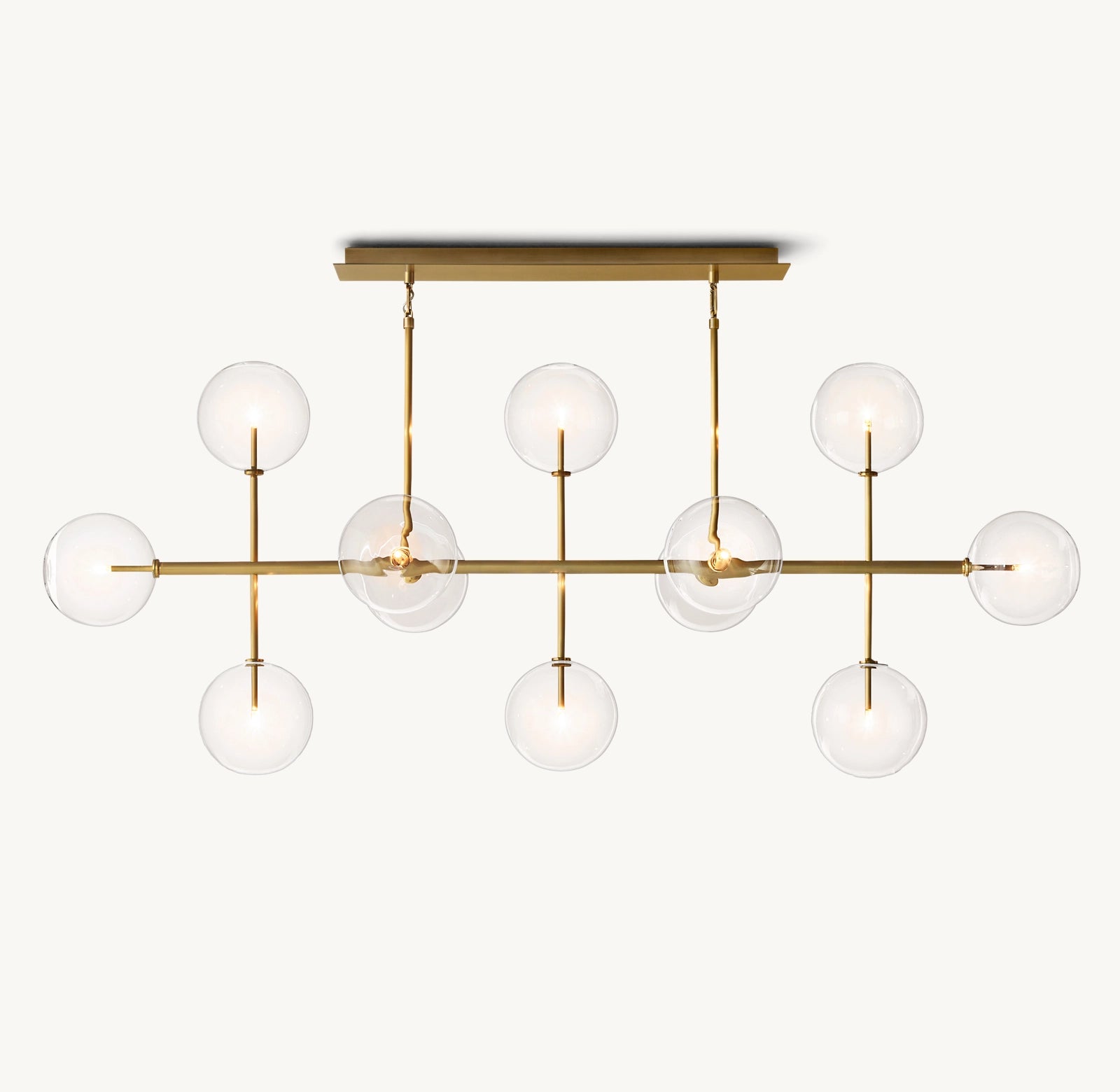 Équilibre subtil entre artisanat et design, Vauban associe des globes en verre soufflé à la main à une structure en laiton massif. Chaque pièce reflète le geste du maître verrier, exprimant à la fois la souplesse du mouvement et la rigueur d'un style architectural moderne.