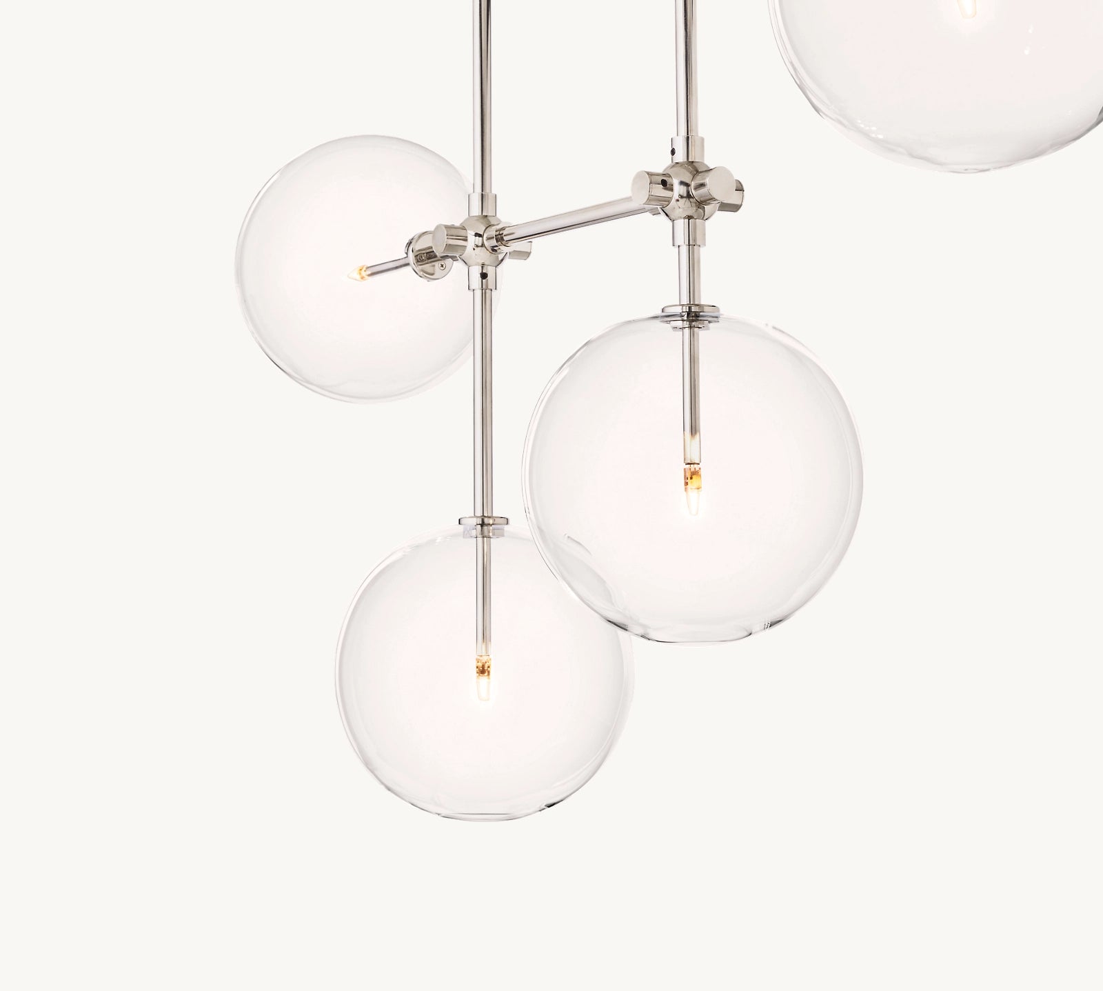 Équilibre subtil entre artisanat et design, Vauban associe des globes en verre soufflé à la main à une structure en laiton massif. Chaque pièce reflète le geste du maître verrier, exprimant à la fois la souplesse du mouvement et la rigueur d'un style architectural moderne.