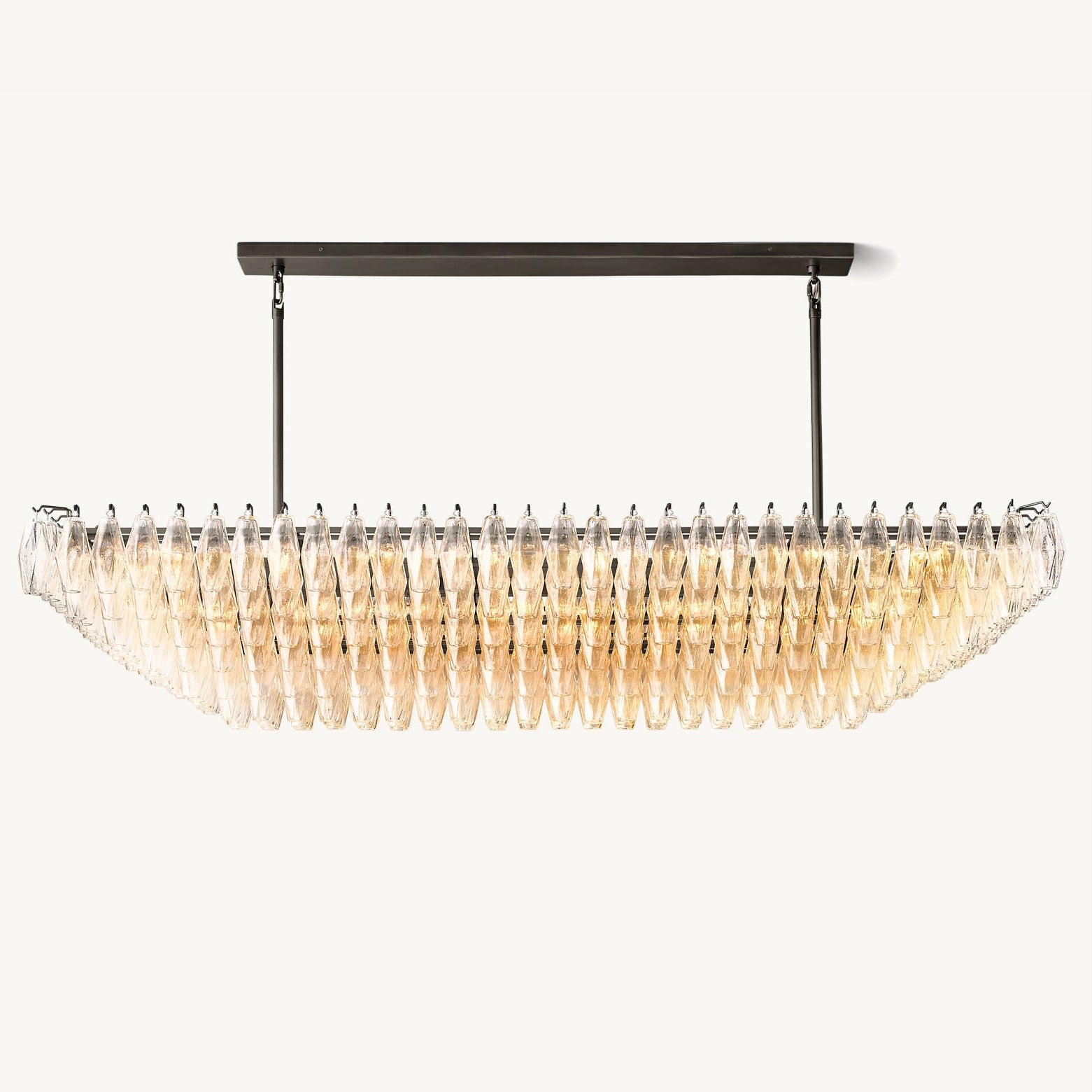 Lustre Rectangulaire à Plusieurs Niveaux en Verre Transparent Venezia 188cm