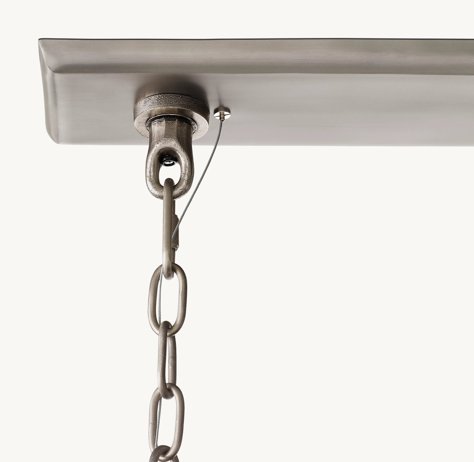 • Suspendu à une chaîne métallique et à un auvent de plafond ; la chaîne peut être raccourcie au moment de l'installation professionnelle