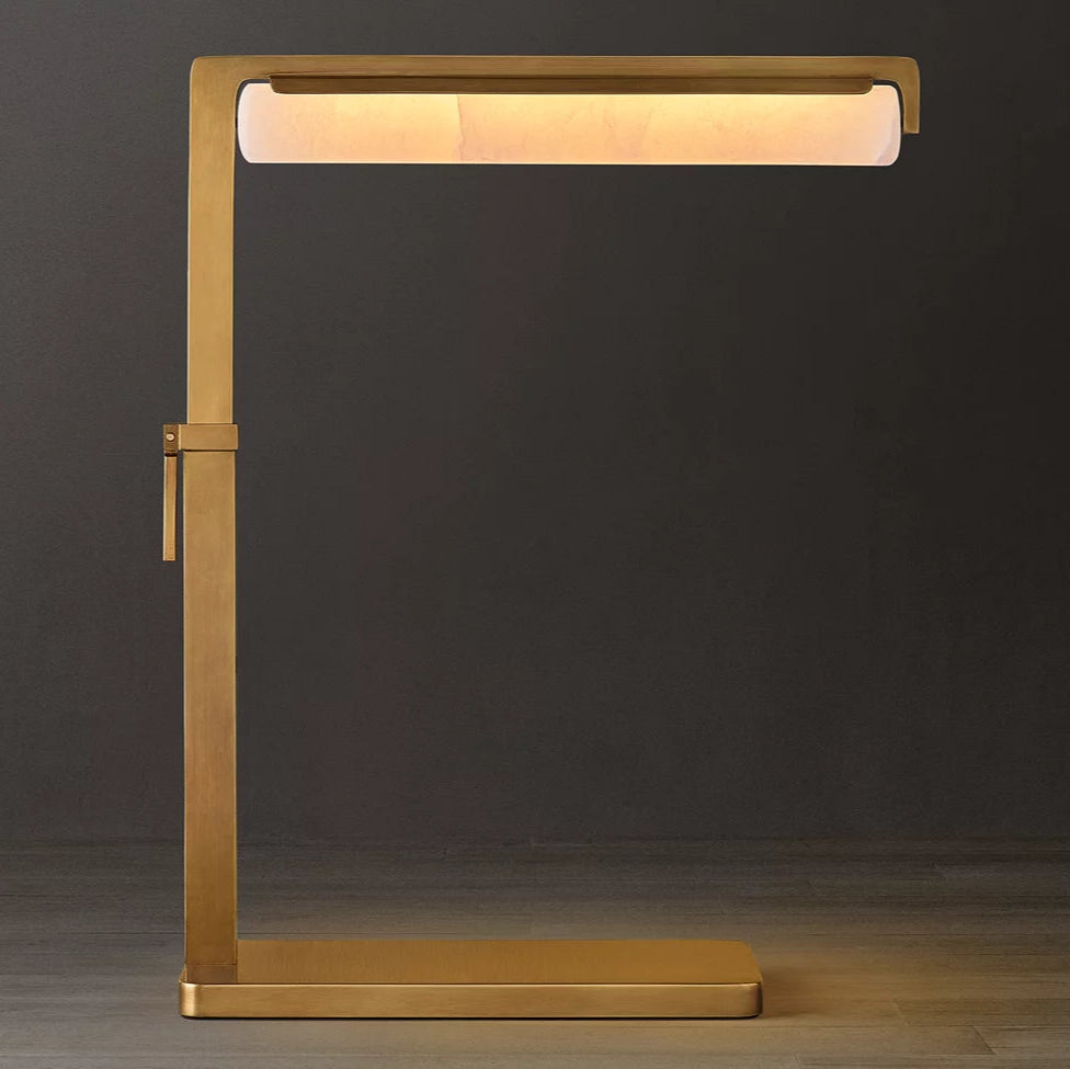 Inspirée du minimalisme italien des années 1960, la lampe de sol Bellmont s’élève avec grâce grâce à sa tiges verticales en laiton, ornées de prismes d’albâtre qui diffusent une lumière douce et sculpturale.