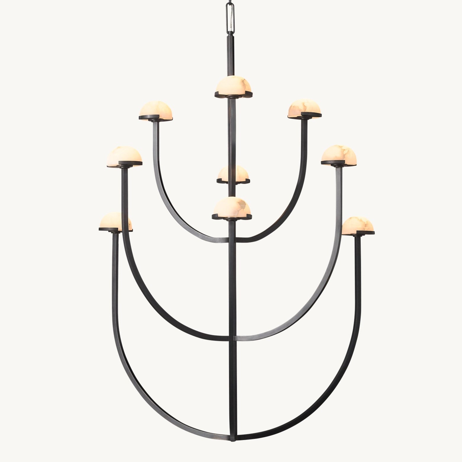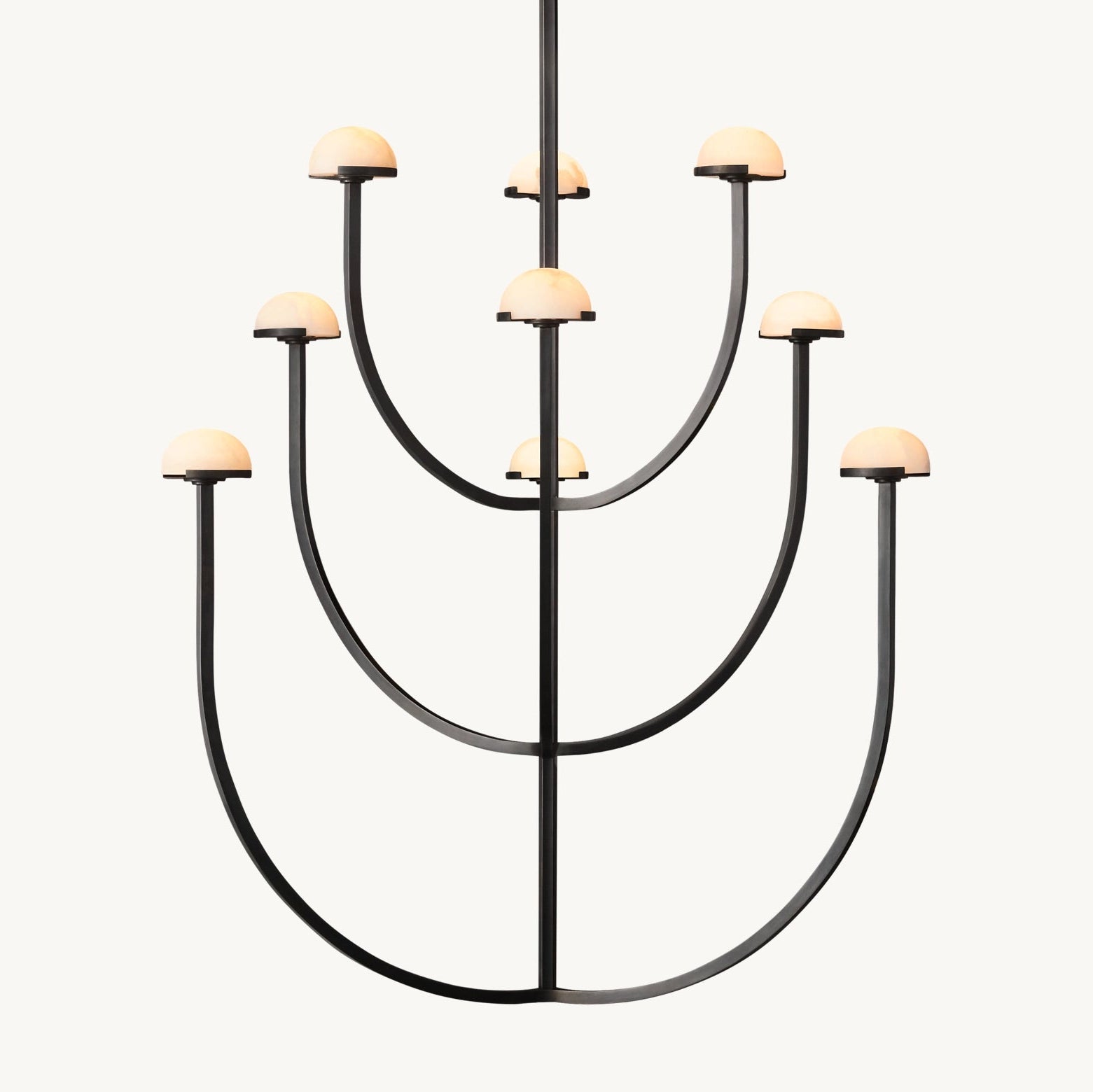 Hommage à l’élégance du design italien d’après-guerre, cette collection allie lignes pures et matériaux nobles. Le laiton massif, façonné avec finesse, soutient des abat-jour en albâtre taillé, dont les veines naturelles diffusent une lumière douce et organique. Une sobriété sophistiquée, toute en nuances.