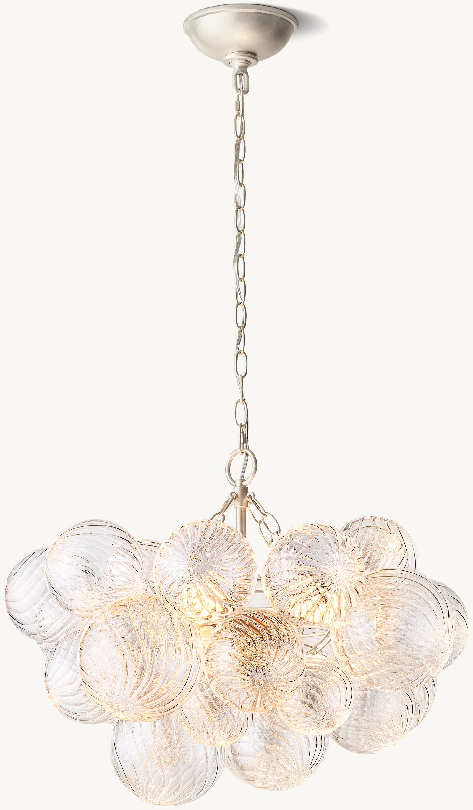 • Structure en acier façonnée à la main, ornée de 27 globes en verre soufflé à la bouche au motif ondulé