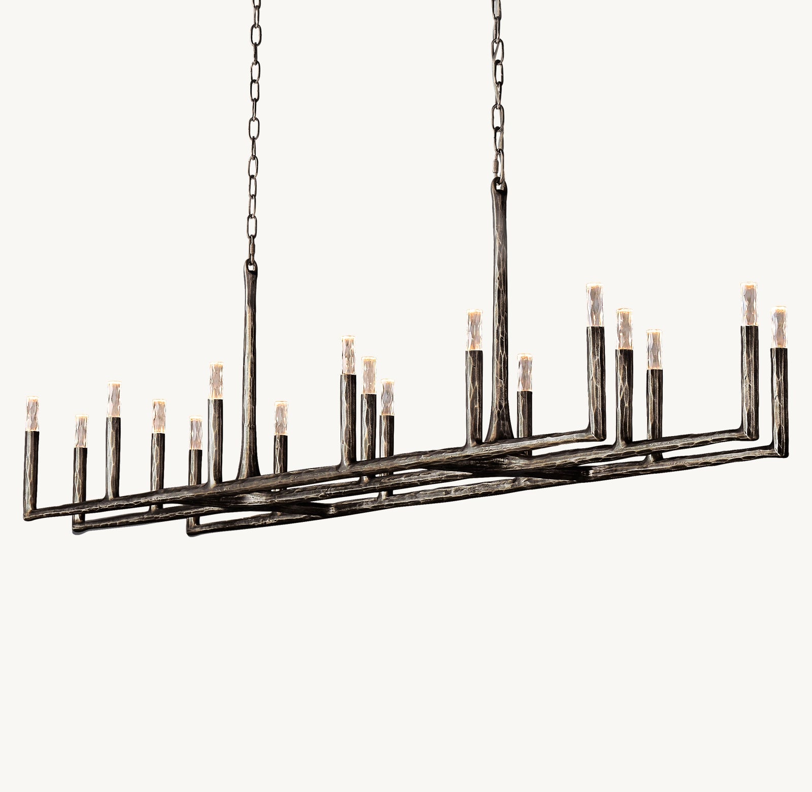 • Corps du lustre : 244 cm L x 48 cm P x 56 cm H