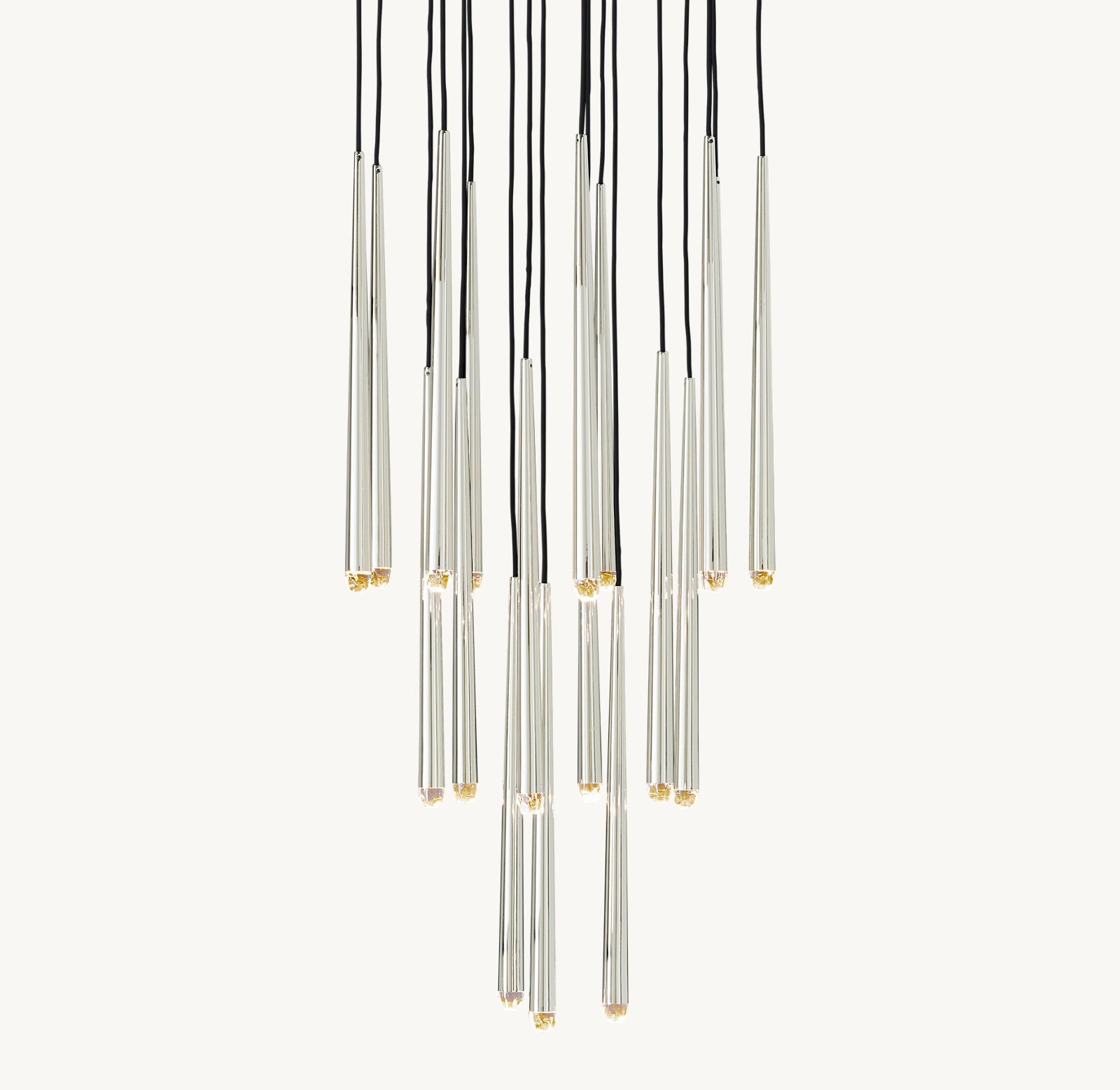 • 18 lumières suspendues à de fins cordons noirs