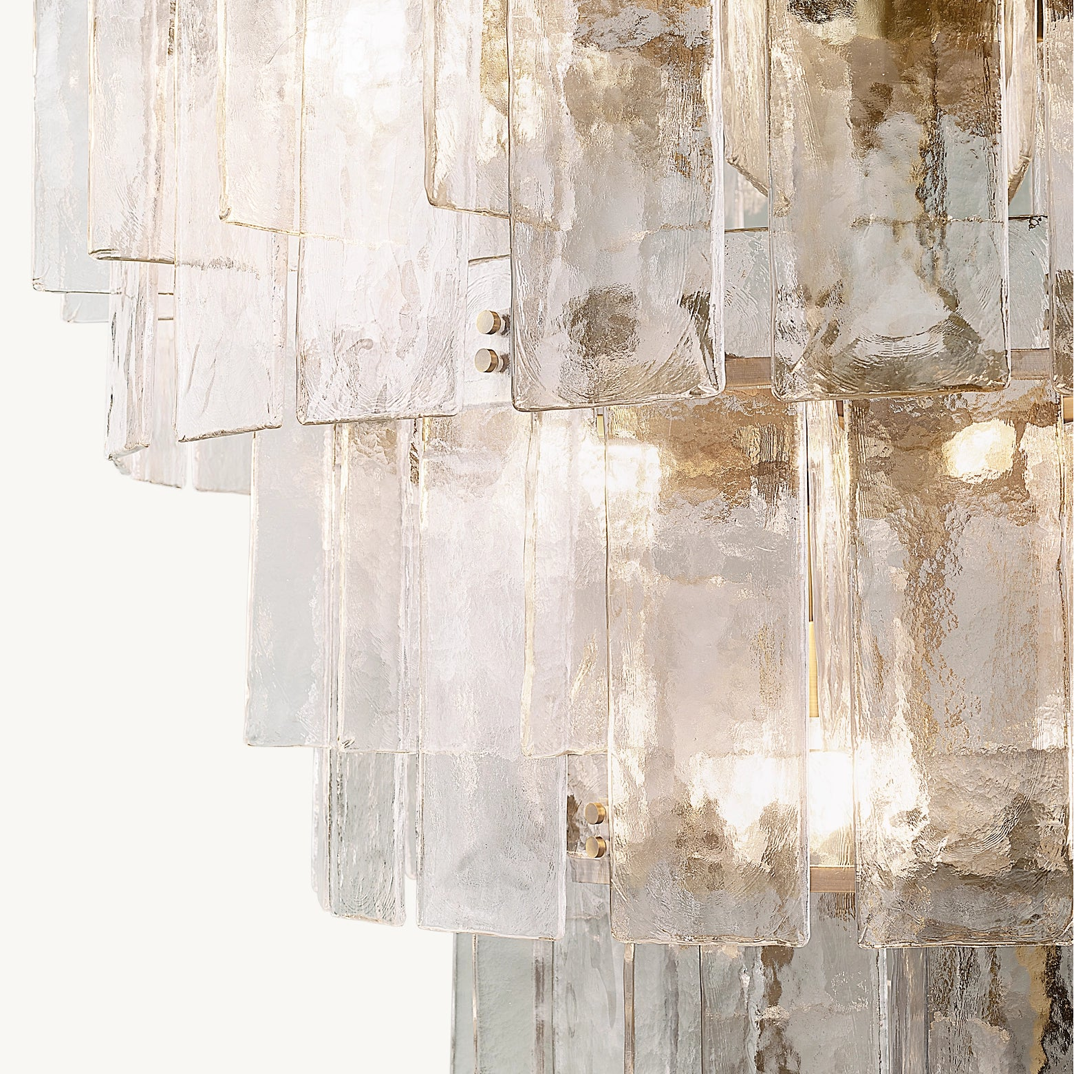 La collection Orsay, façonnée en verre coulé massif, réinterprète la rigueur du style international du milieu du siècle. À travers ses surfaces imbriquées et ses volumes ouverts, elle propose une lecture sculpturale du rythme et de la répétition. Les vitres, aux contours adoucis et aux lignes ondoyantes, diffusent une lumière intérieure qui confère à l'ensemble une légèreté visuelle saisissante.