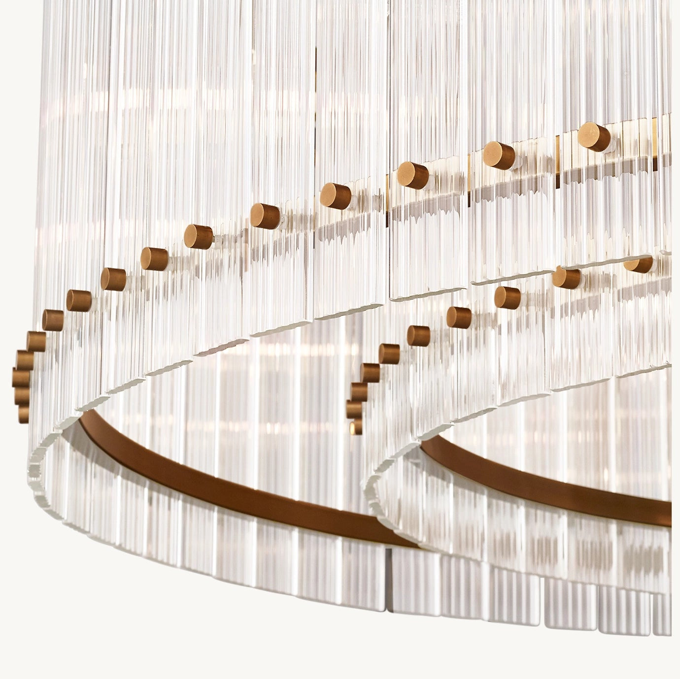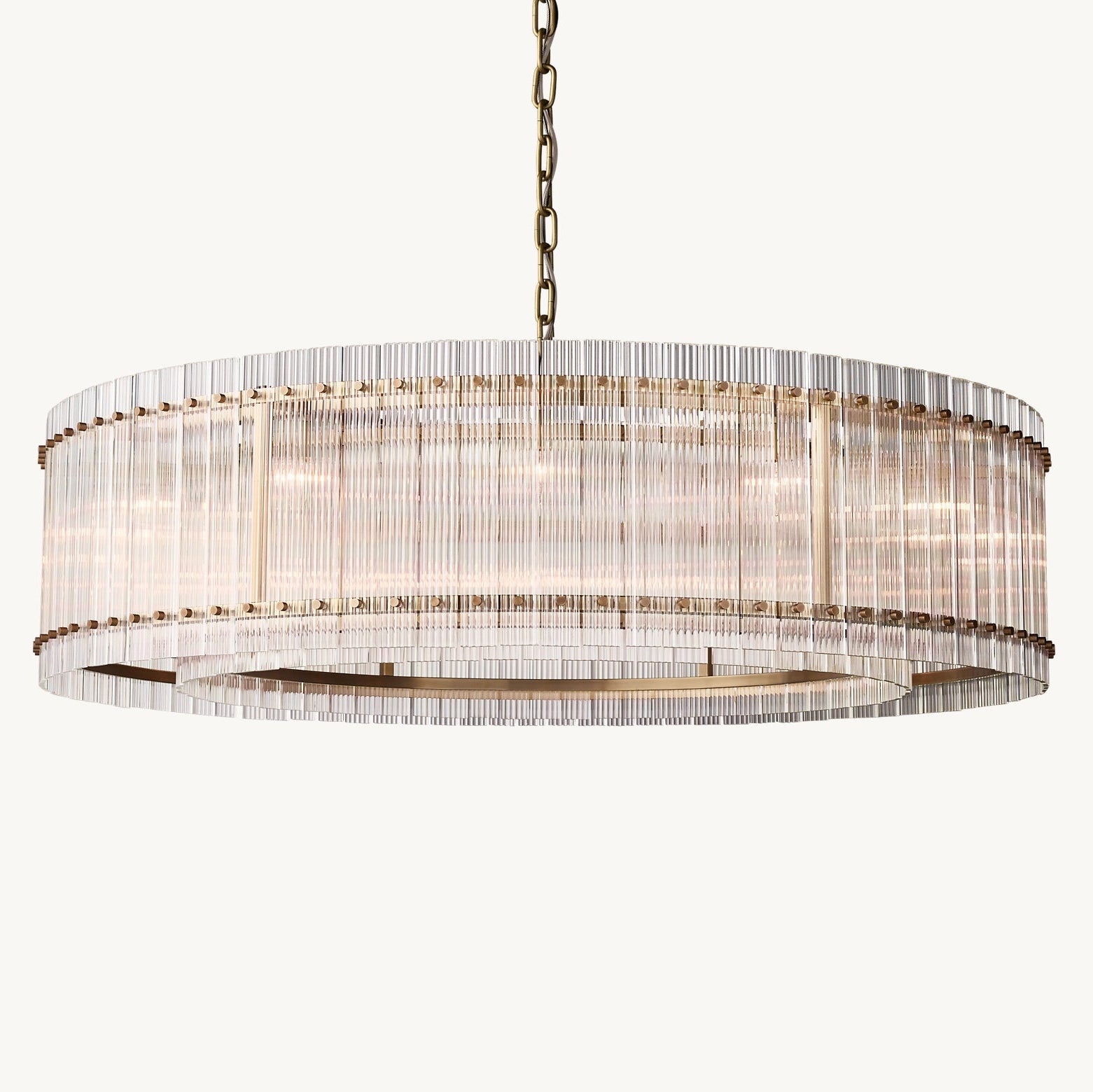 S'inspirant de l'élégance intemporelle des luminaires en verre italiens des années 1960, ce lustre incarne le raffinement et la sophistication. Son cadre métallique accueille des dizaines de panneaux de verre, minutieusement ciselés à la main pour créer une texture cannelée.