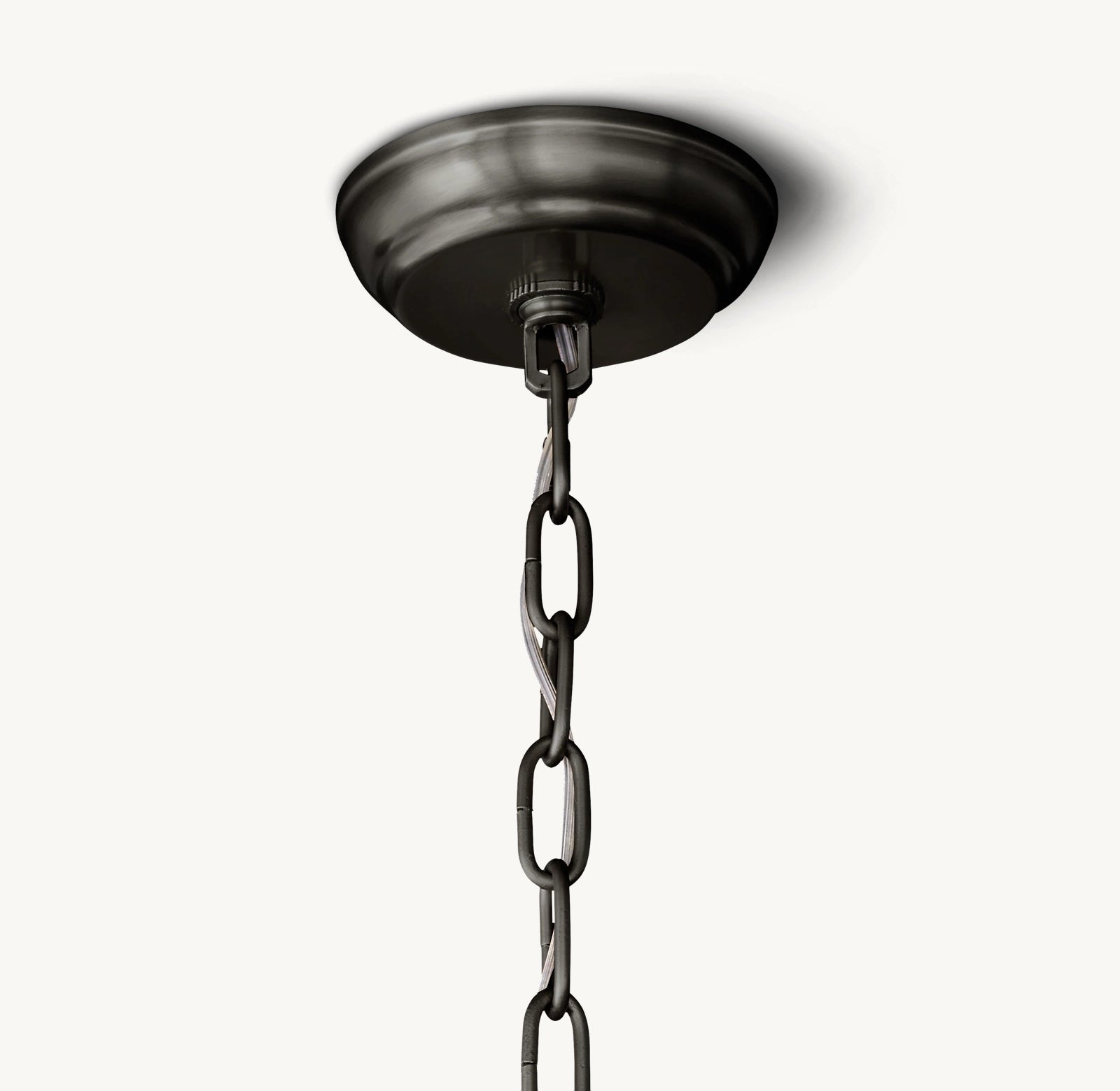 • Suspension par une chaîne métallique ajustable et un auvent de plafond