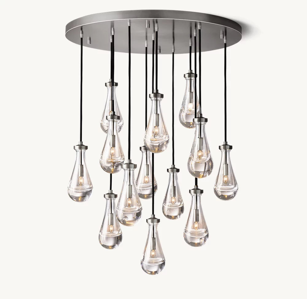 • Chaque goutte en verre : 13cm de diamètre, 28cm de hauteur ; 2.3kg
