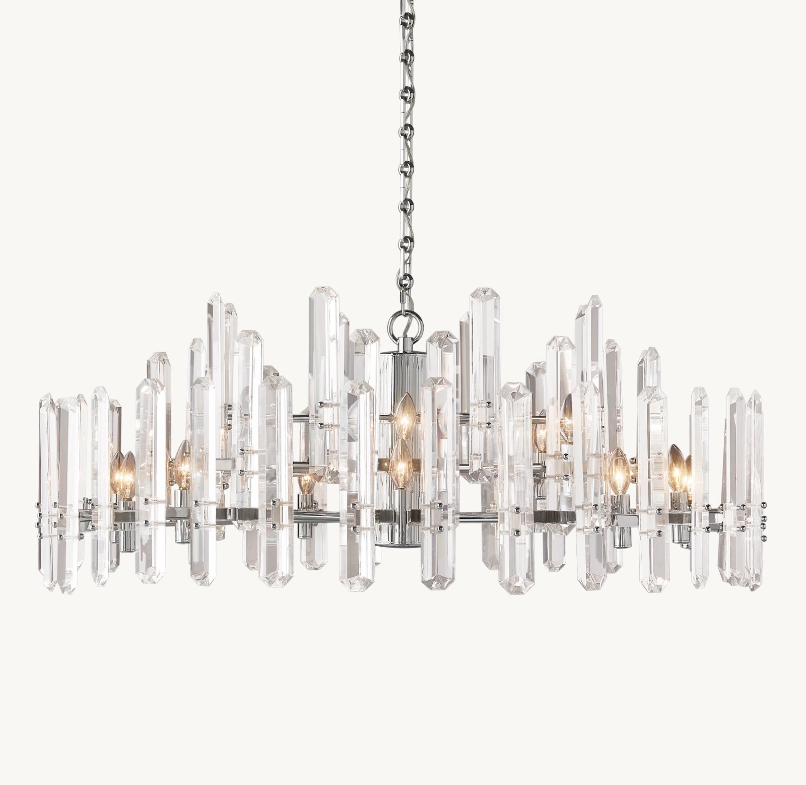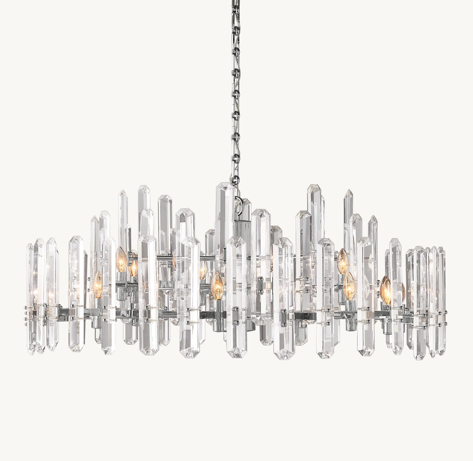 La collection Valois revisite les codes du lustre classique en s’inspirant des années 60 autrichiennes. Des anneaux ordonnés de cristaux ultra-transparents encerclent une structure en laiton massif, créant un dialogue graphique entre éclat et matière. Un design circulaire où la lumière devient architecture.