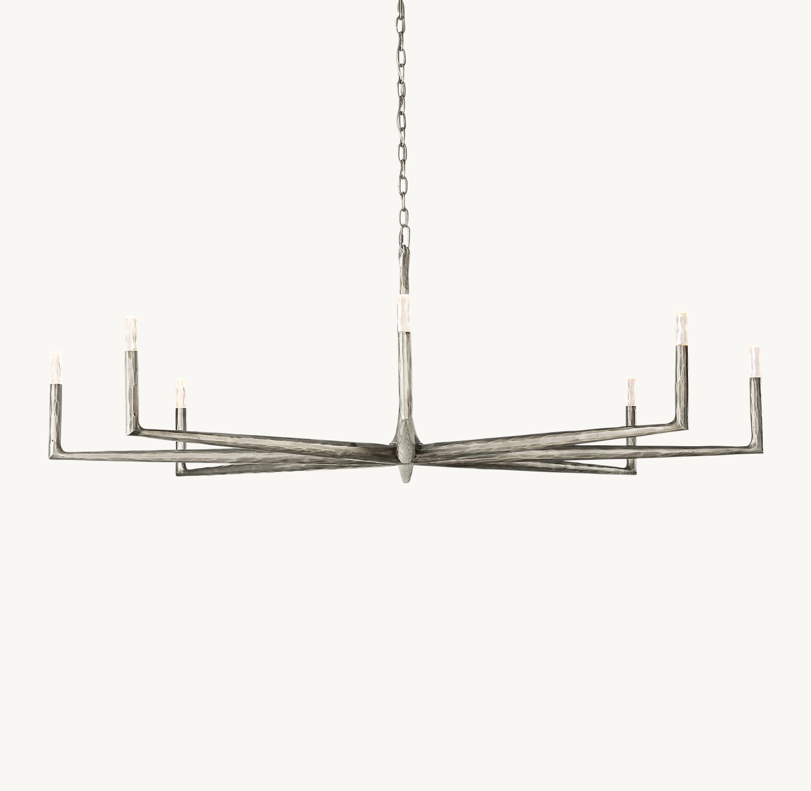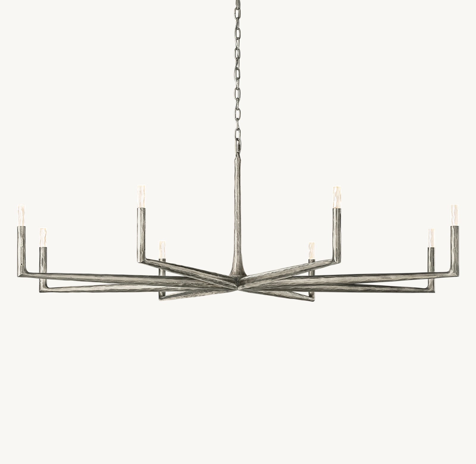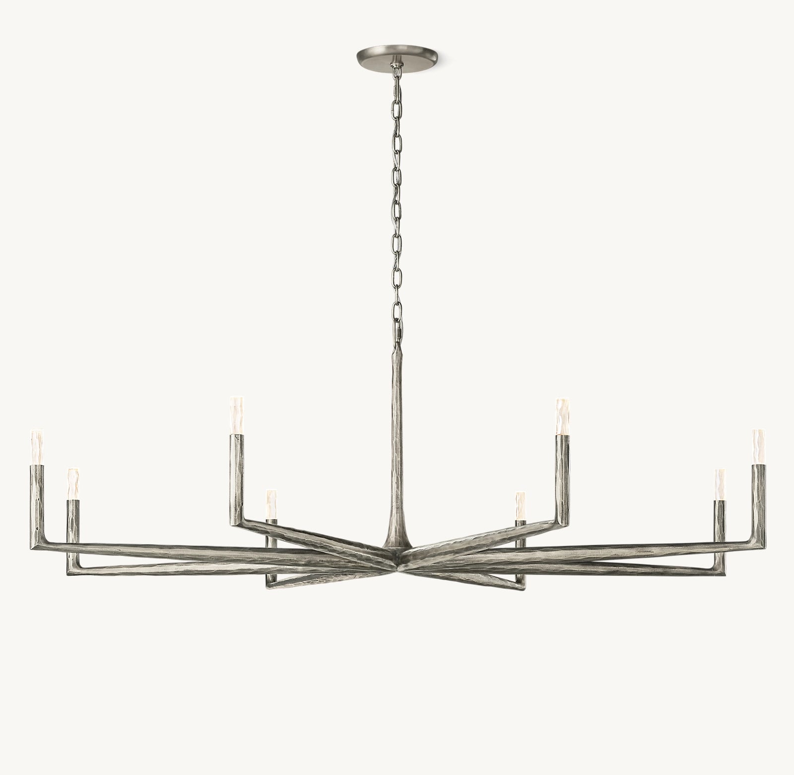 • Corps du lustre : 183 cm de diamètre, 56 cm de hauteur