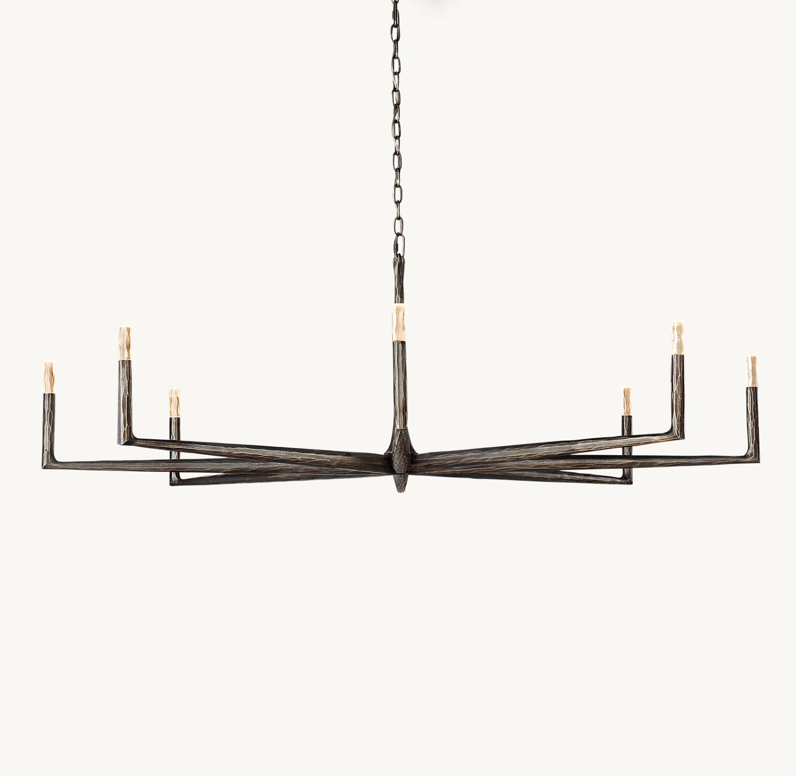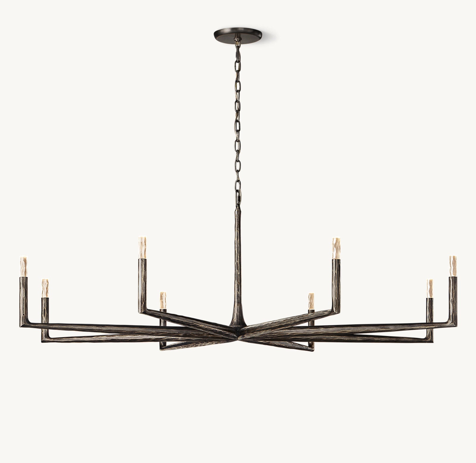 • Corps du lustre : 183 cm de diamètre, 56 cm de hauteur