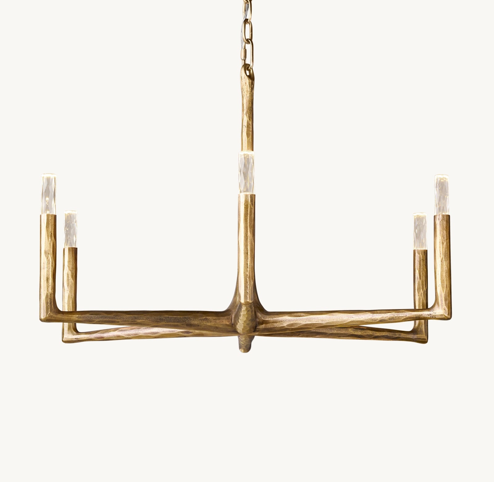 Cette collection rend hommage à l’héritage sculptural de Salvador Dalí et Diego Giacometti. Le laiton massif et l’acier inoxydable sont travaillés à la main selon une méthode traditionnelle : chaque barre martelée révèle une texture unique, brute, presque primitive. Ce relief vibrant dialogue avec la silhouette longiligne et élégante du cadre, dans un équilibre entre force et délicatesse.